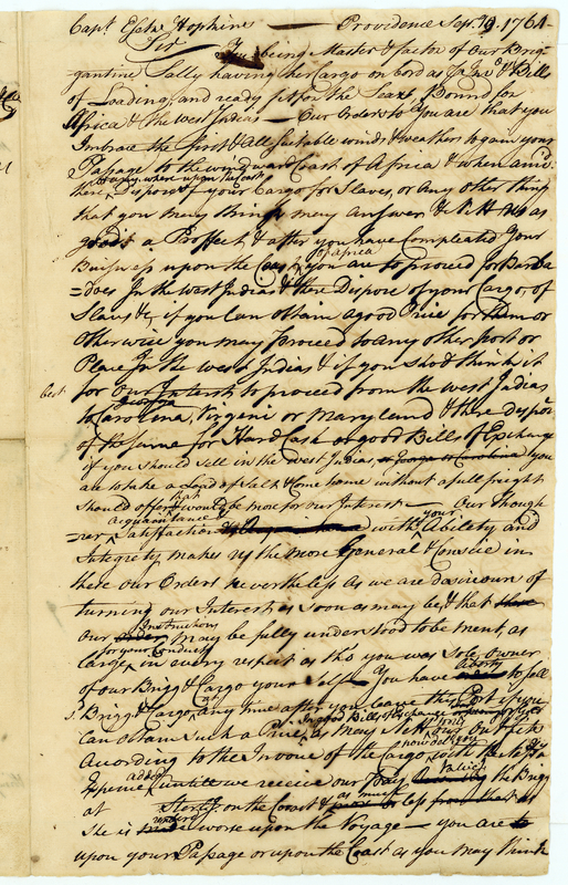 For those who want more of a challenge: Letter from Nicholas Brown to Esak Hopkins, 1764