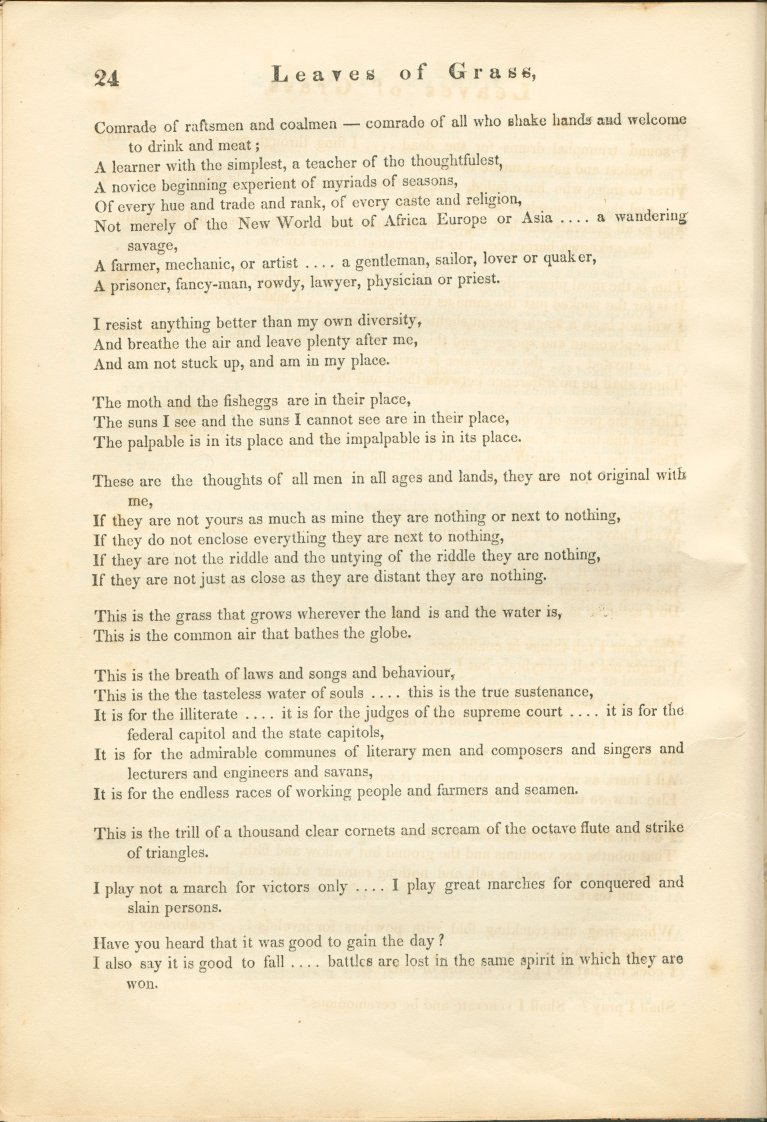 Walt Whitman's Song of Myself, 1855 (excerpt)
