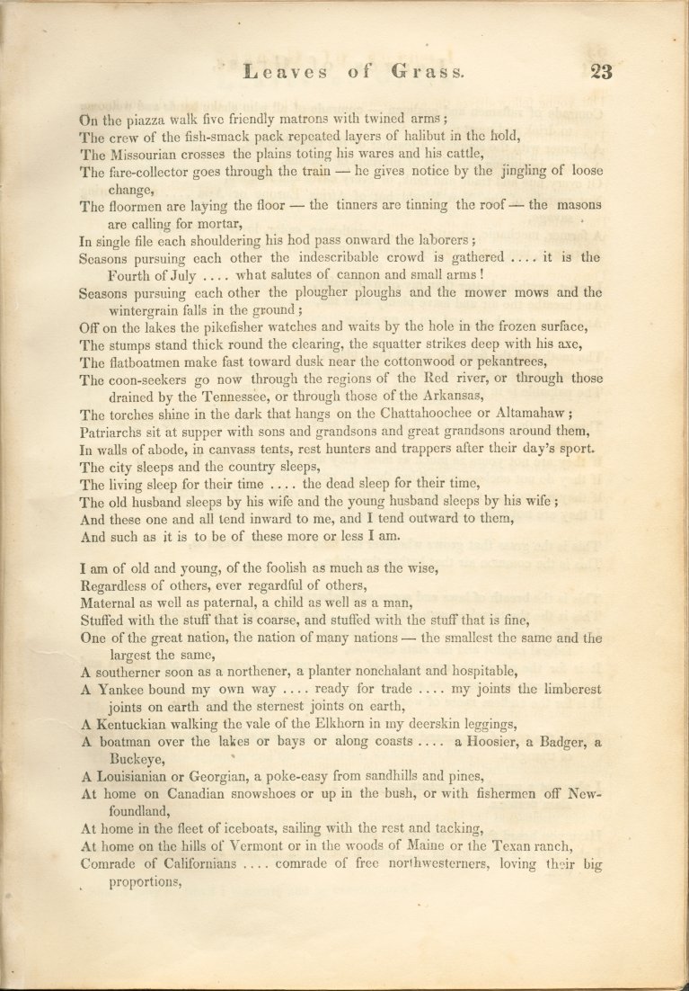 Walt Whitman's Song of Myself, 1855 (excerpt)